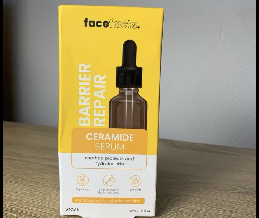 Face Facts Ceramide Serum (30ml) is a barrier repair serum that soothes, protects, and hydrates stressed and dehydrated skin. It combines 3 ceramides and hyaluronic acid, suitable for AM and PM use, helping to restore skin resilience and moisture for a healthy glow. Also vegan-friendly.