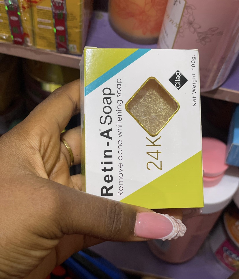 Retin-A Whitening Soap: 100g gold-infused bar soap with Retin-A for deep acne removal, brightening dark spots, and smoothing skin. Gentle cleanse for clearer, radiant complexion!
